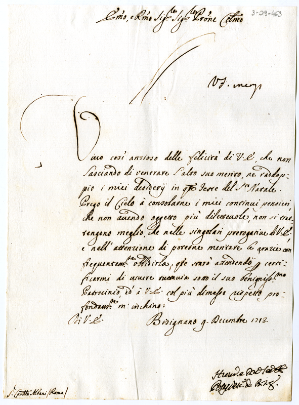 Lettera del vescovo di Bisignano al cardinale Annibale Albani (1713 dicembre 9)