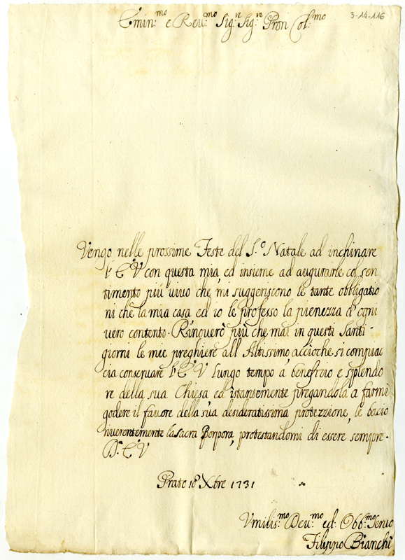 Lettera di Filippo Bianchi al cardinale Annibale Albani (1731 dicembre 18)