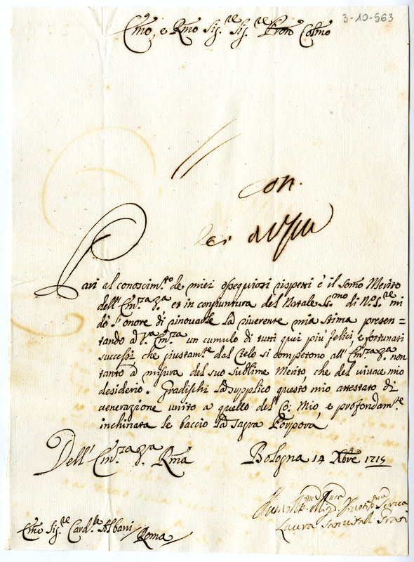 Lettera di Laura Sanvitali Grati al cardinale Annibale Albani (1715 dicembre 14)