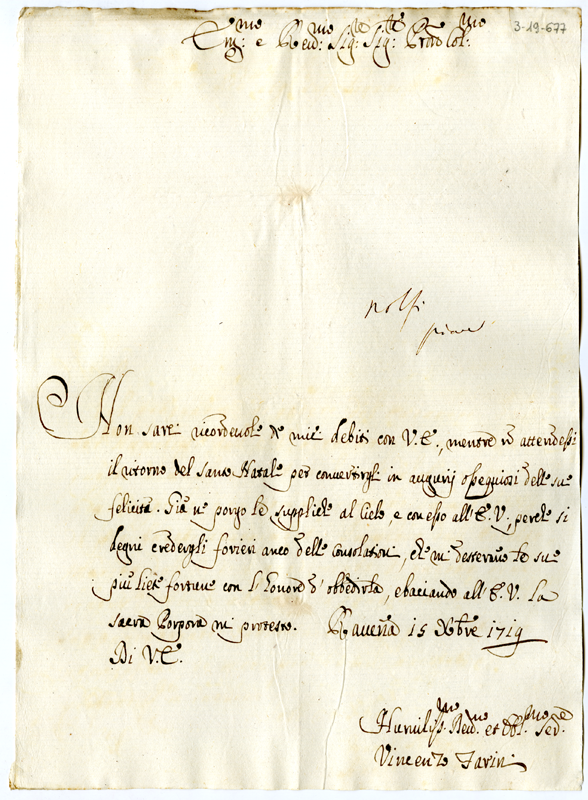 Lettera di Vincenzo Farini ad Annibale Albani (1719 dicembre 15)