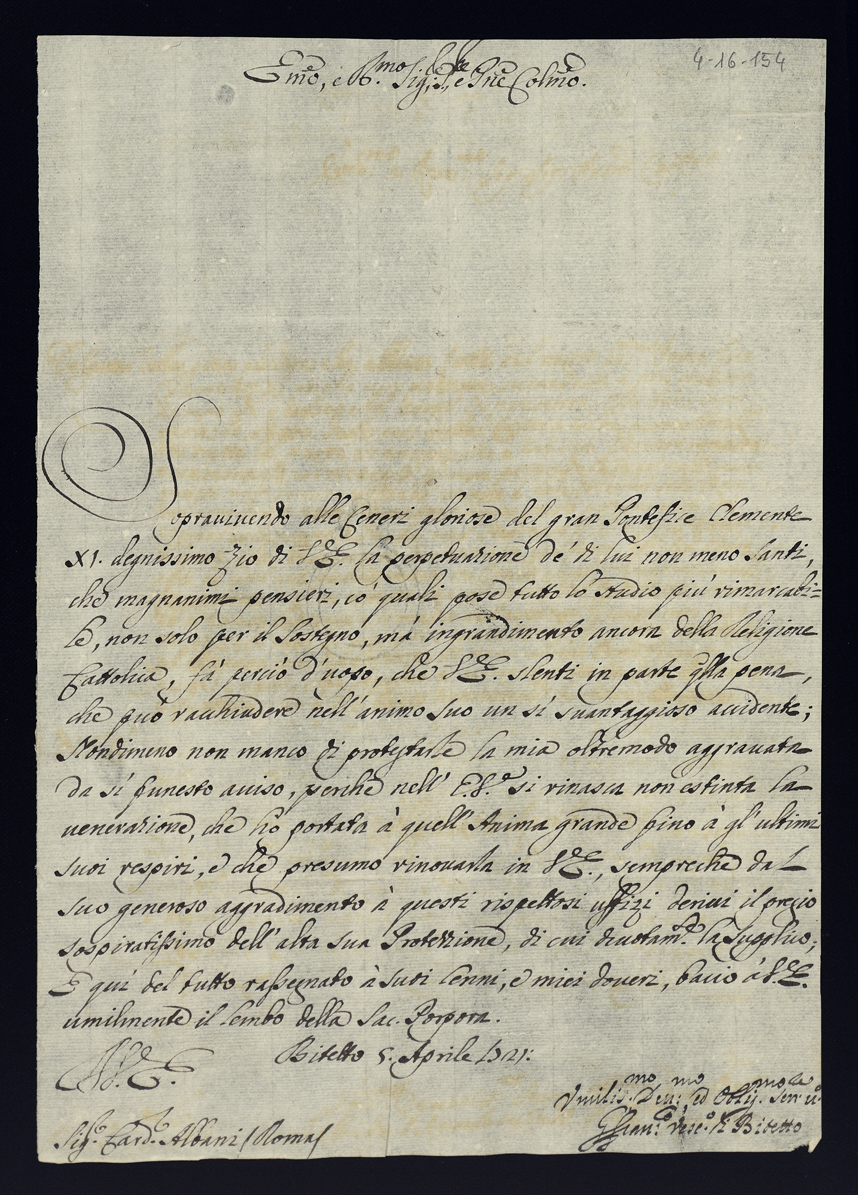Lettere di condoglianza per la morte di Papa Clemente XI di gloriosa memoria