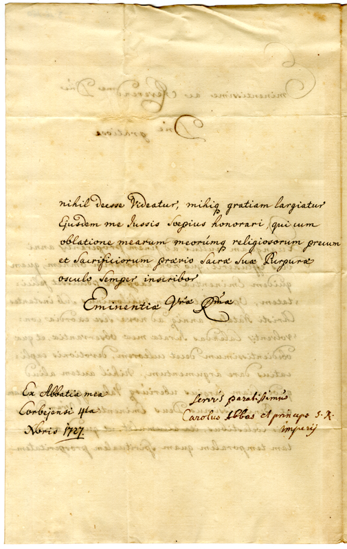 Lettera di Carlo abbate e principe del Sacro Romano Impero al cardinale Annibale Albani (1727 dicembre 4)