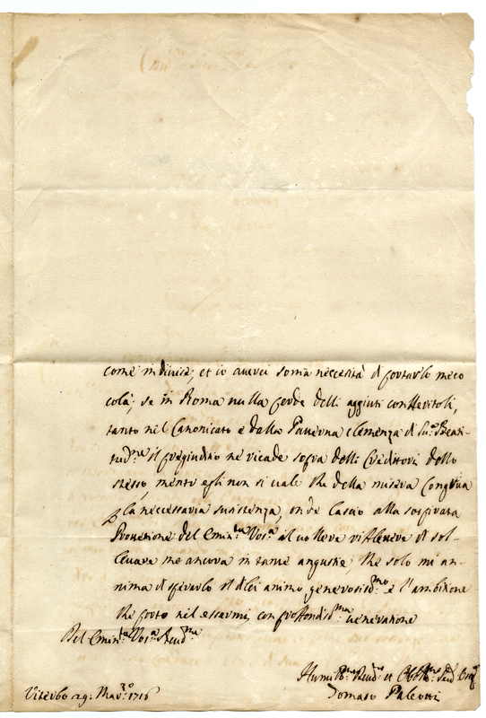Lettera di Tomaso Paleotti al Cardinale Annibale Albani (1716 marzo 29)