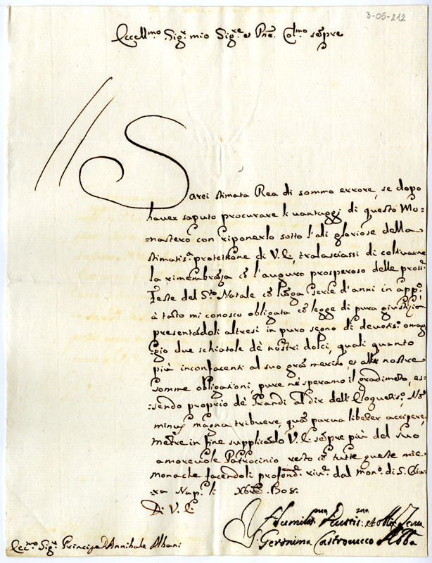 Lettera di Geronimo Castrocucco ad Annibale Albani (1708 dicembre)