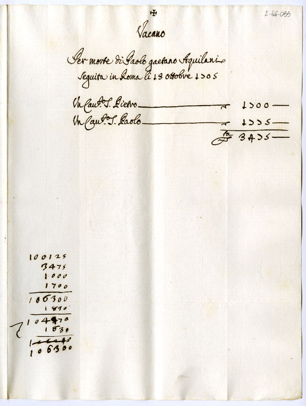 Canonicati vacanti per morte di Paolo Gaetano Aquilani (1705 ottobre 13)