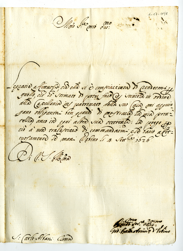 Lettera di Giambattista Candiotti, vescovo di Urbino, a Carlo Albani (1676 settembre 4)