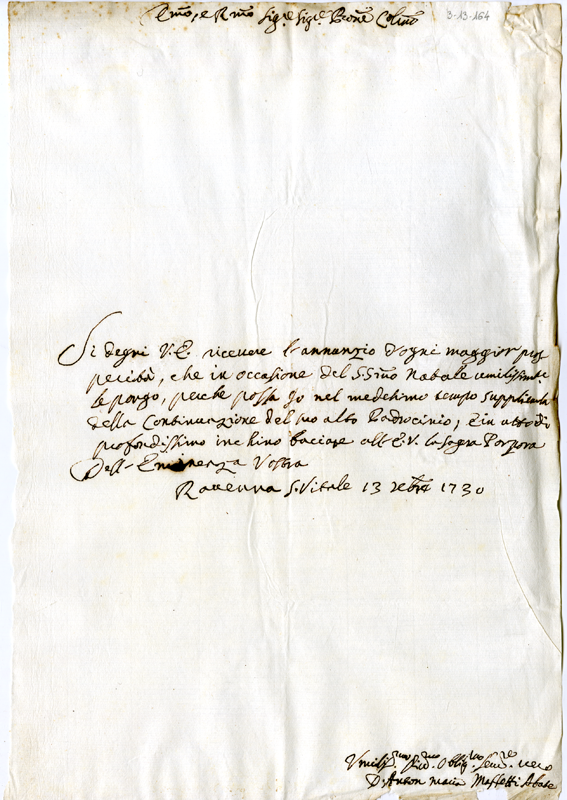 Lettera di Anton Maria Maffetti abate al cardinale Annibale Albani (1730 dicembre 13)