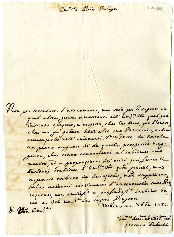 Lettera di Gaetano Fedeli al cardinale Annibale Albani (1731 dicembre 21)