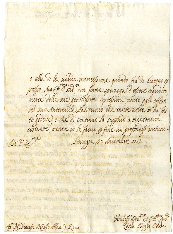 Lettera di Carlo degli Oddi a Carlo Albani (1712 dicembre 20)