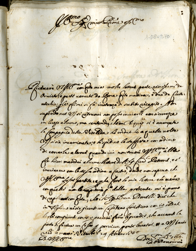 Lettera di Monsignor Borromeo Giberto a Malatesta Albani (1644 febbraio 29)