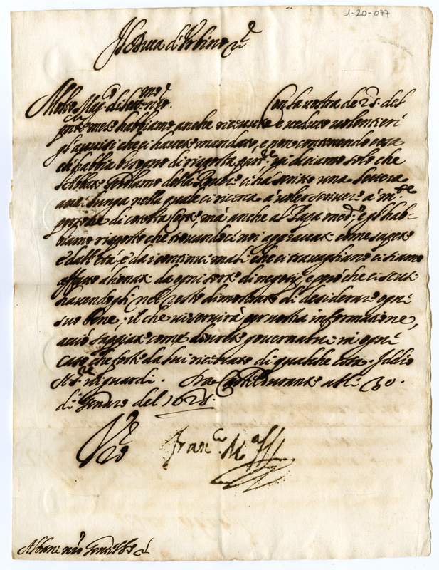 Lettera di Francesco Maria II duca di Urbino a Orazio Albani (1625 gennaio 30)