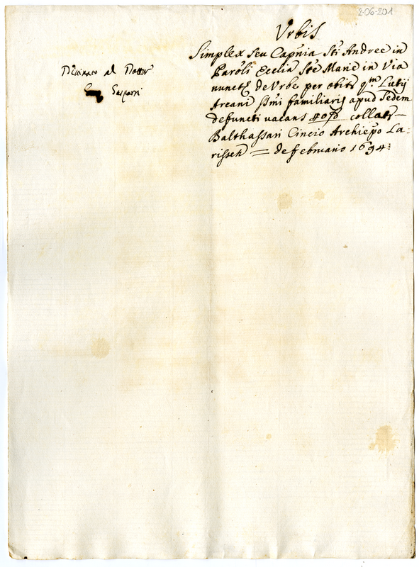 Beneficio semplice destinato al dottor Gasparri in Roma (1700-1721)