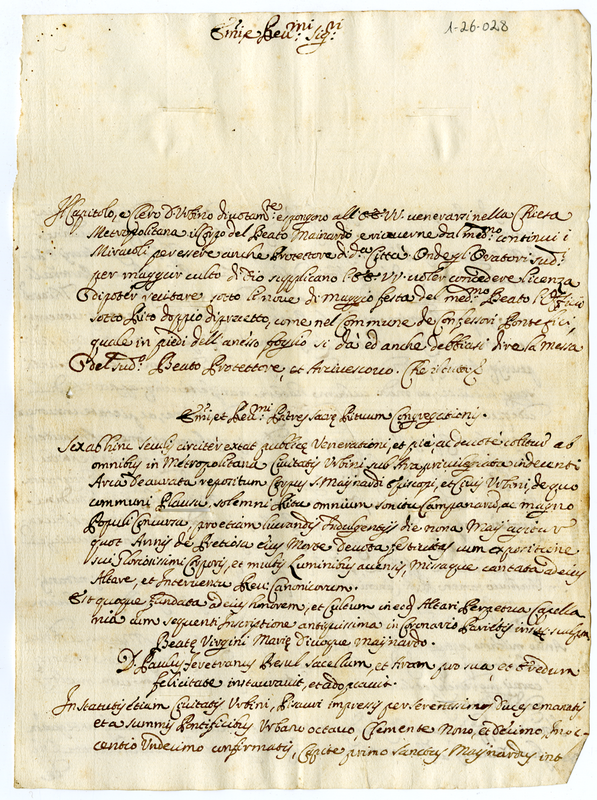 Lettera del Capitolo e Clero di Urbino a Eccellentissimi e Reverendissimi Signori della Sacra Congregazione dei Riti (1693 settembre 19)