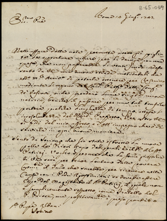 Lettere ricevute in Urbino dal Signor Principe Orazio Albani ultimo di questo nome nell'anno 1747
