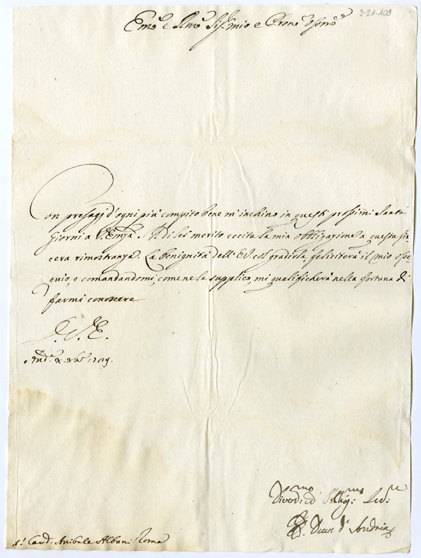 Lettera del duca di Andria al cardinale Annibale Albani (1729 dicembre 10)