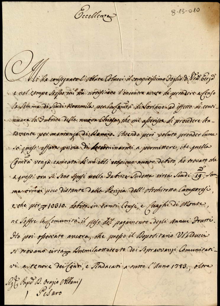 Lettere diverse ricevute in Colbordolo, Pesaro e Senigallia nel 1784