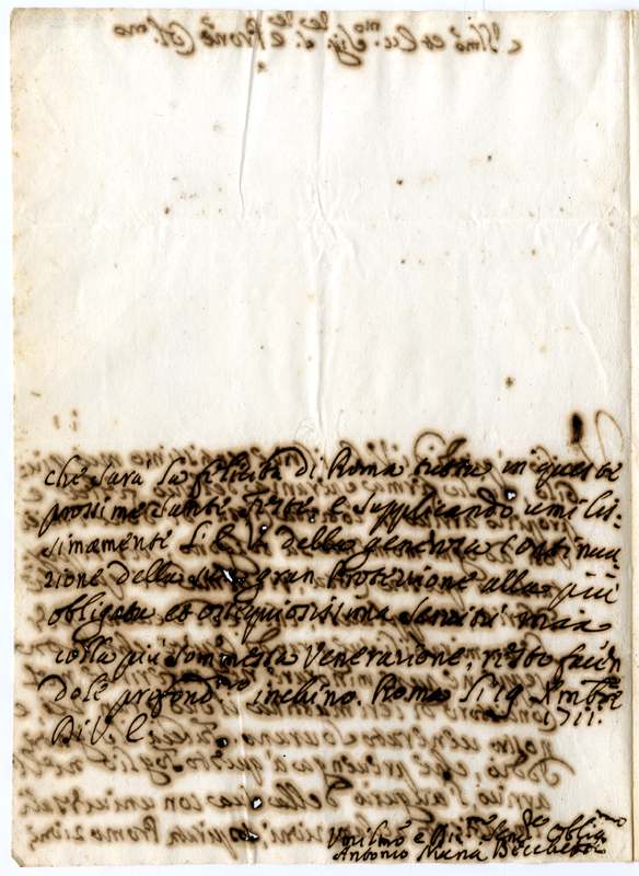 Lettera di Antonio Maria Becchetti ad Annibale Albani (1711 dicembre 19)