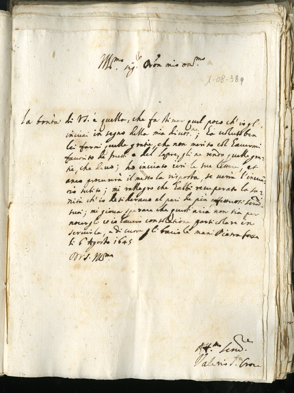 Lettera di Valerio Santa Croce a Malatesta Albani (1645 agosto 6)