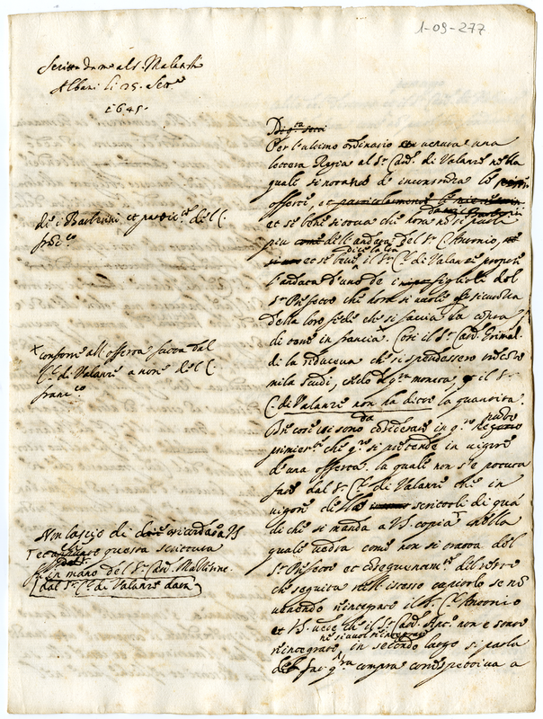 Minuta di lettera scritta a Malatesta Albani (dal cardinale Francesco Barberini) (1645 settembre 25)