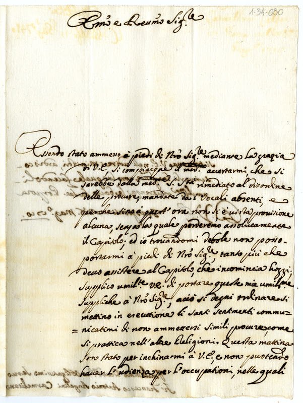 Lettera di fra Francesco Antonio Angelini carmelitano a un cardinale (1719 maggio 28)