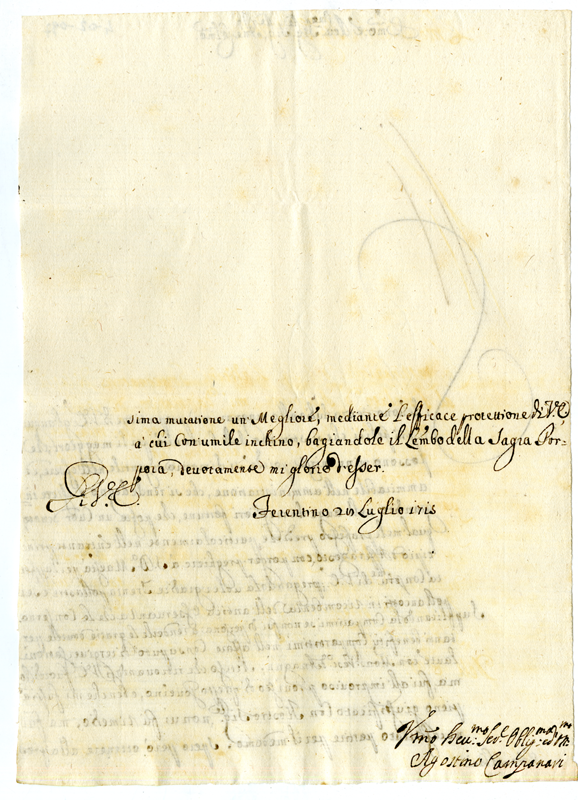Lettera di Agostino Campanari al Cardinale Annibale Albani (1715 luglio 28)