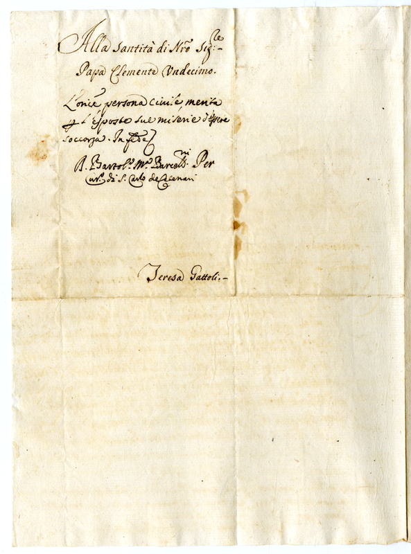 Lettera di Teresa Gattoli a papa Clemente XI (1700-1721)