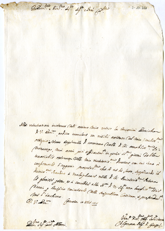 Lettera di A. Carrara preposto di Canosa al cardinale Annibale Albani (1715 dicembre 14)