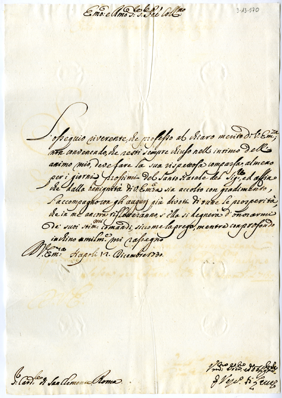 Lettera del vescovo di Lecce al cardinale Annibale Albani (1730 dicembre 12)