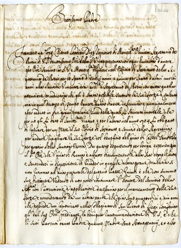 Di salute cagionevole, chiede al pontefice di ritornare a Liegi sua patria dove possiede un canonicato nella collegiata di San Pietro