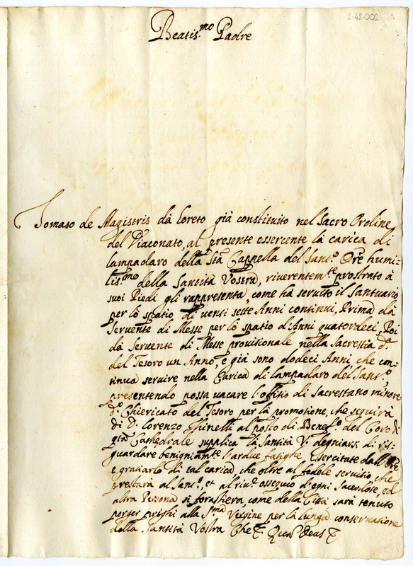 Chiede al pontefice di poter essere investito dell'ufficio di sacrestano minore nella Santa Casa di Loreto