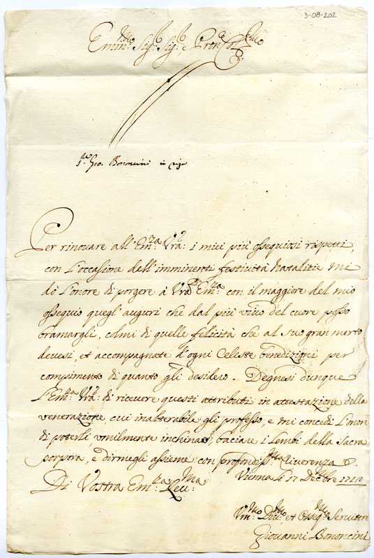 Lettere di Giovanni Bononcini al cardinale Annibale Albani (1712 dicembre 17)