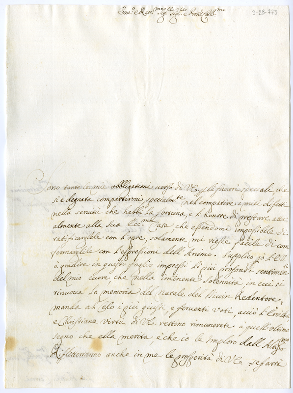 Lettera di Giovanni Battista Cerroni al cardinale Annibale Albani (1724 dicembre 16)