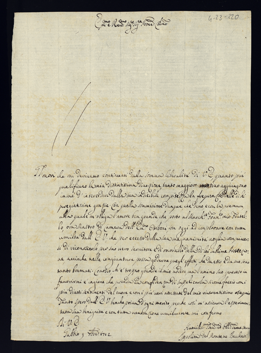 1712. Lettere di complimento e di negozio. Semestre secondo