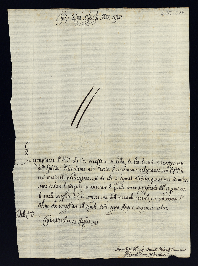 Lettere di congratulazione per l'esaltazione alla Porpora dell'eminentissimo cardinale Alessandro Albani