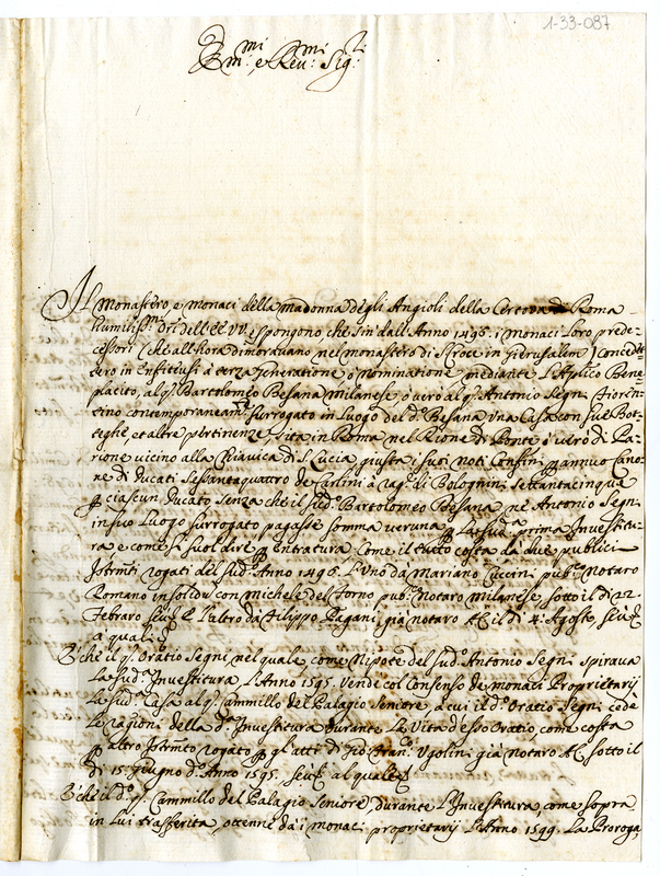 Lettera dei monaci della Madonna degli Angeli della Certosa di Roma alla sacra congregazione dei vescovi e regolari (1698)