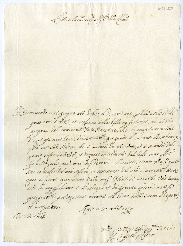 Lettera del capitolo e clero di Loreto al cardinale Annibale Albani (1720 dicembre 20)