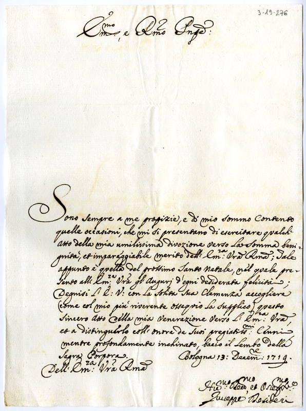 Lettera di Giuseppe Desideri ad Annibale Albani (1719 dicembre 13)