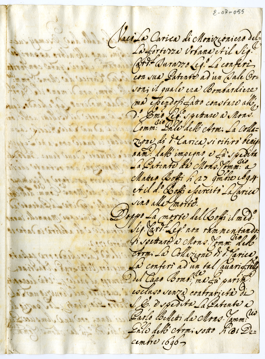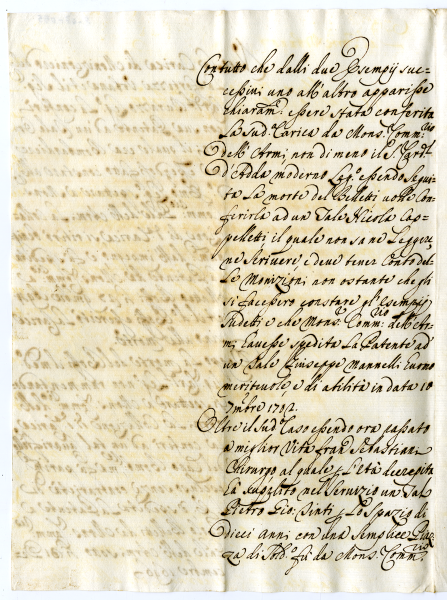 Fort'Urbano Memoria di Patenti Spedite (1704)