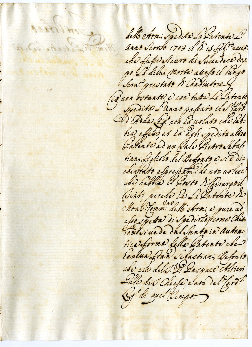 Fort'Urbano Memoria di Patenti Spedite (1704)