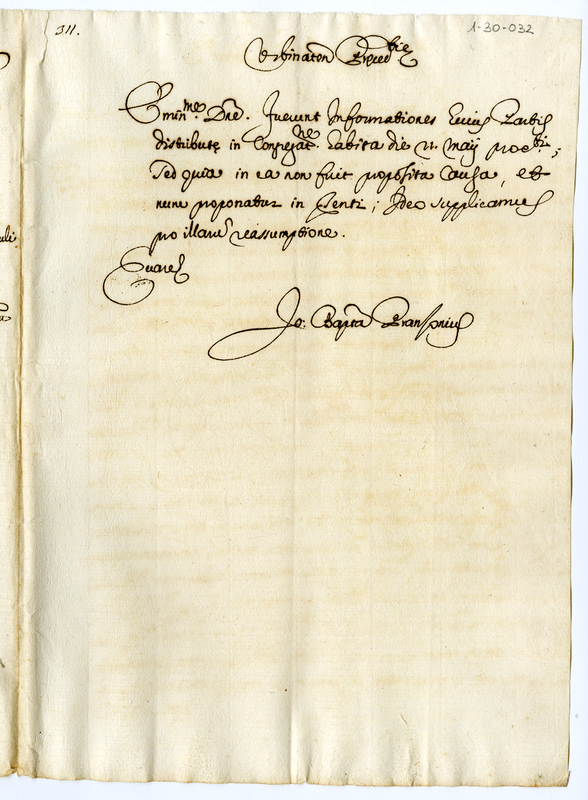 Alla Sacra Congregazione dei Vescovi e dei Religiosi all'Eminentissimo e Reverendissimo Cardinale Carpegna. Lettera di Don Giacomo Peruli Priore di San Paolo. Riassunto (1660-1670)