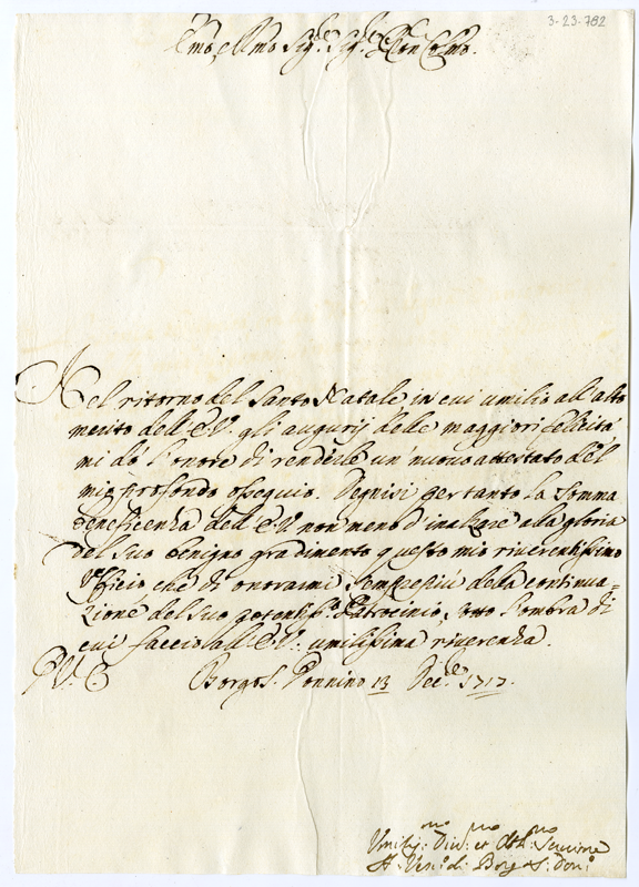 Lettera del vescovo di Borgo San Donnino al cardinale Annibale Albani (1717 dicembre 13)