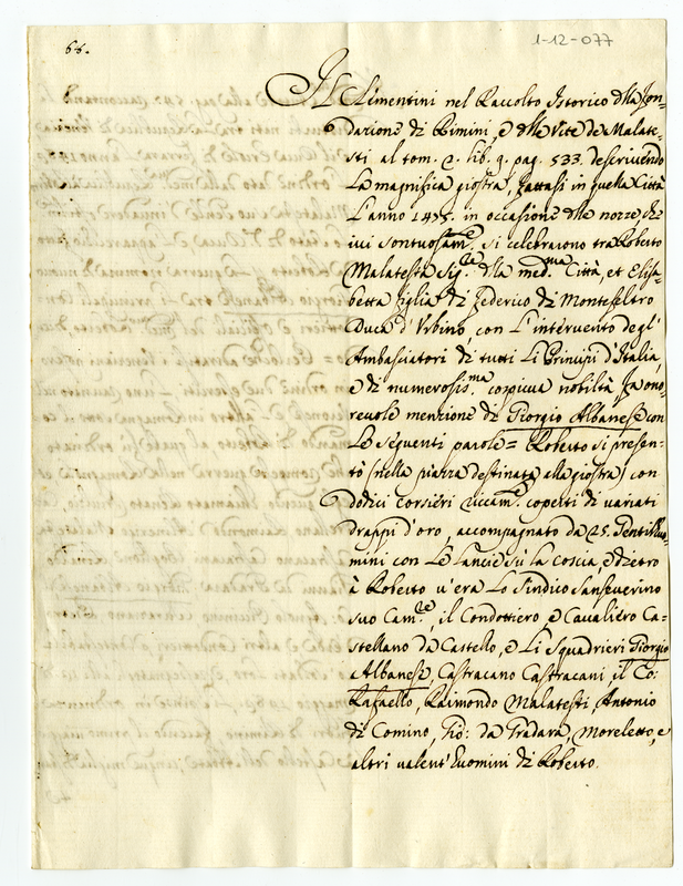 Memorie storiche su Giorgio Albanese trascritte da un'opera del Clementini