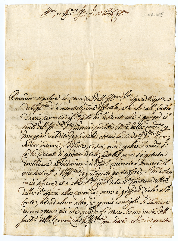 Il notaio Rosati fa sapere che circa la stipula dell’instrumento di rinuncia è sorta una difficoltà, ossia che Carlo Albani desidera che anche la signora contessa Carlotta, madre della sposa acconsenta alla rinuncia. Una rinuncia, tuttavia, che Rosati non ritiene necassaria e che consiglia di tralasciare