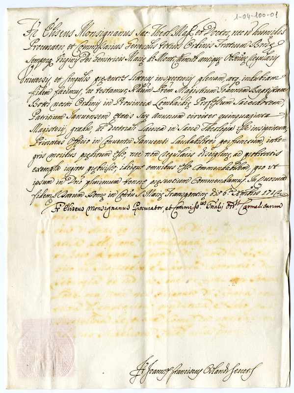 4. Lettera di fra Eliseo Monsignano (1712 dicembre 6)