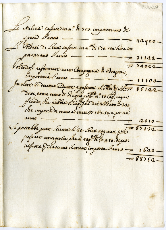 Spese per la costituzione di una compagnia di Dragoni (1701-1710)