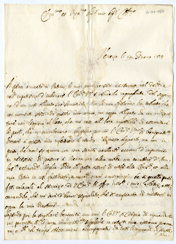 Lettera di Vittorio Zane al Cardinale Annibale Albani (1715 gennaio 12)