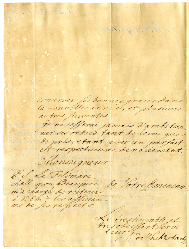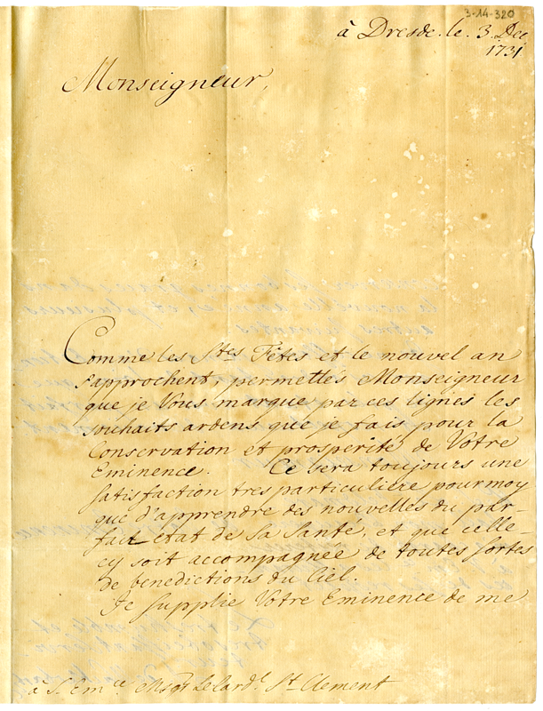 Lettera di I. de Wackerbarth al cardinale Annibale Albani (1731 dicembre 3)