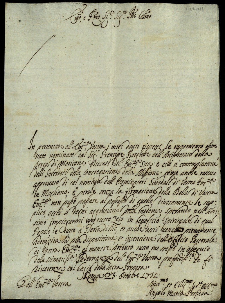 Lettere al cardinale di S. Clemente. 1730 - 1731