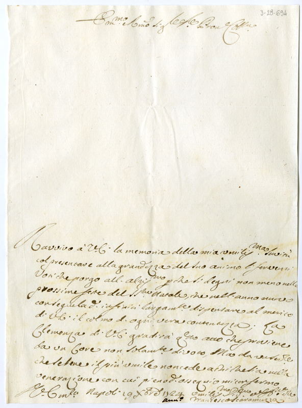 Lettera di Francesco Scaramuzza al cardinale Annibale Albani (1724 dicembre 19)