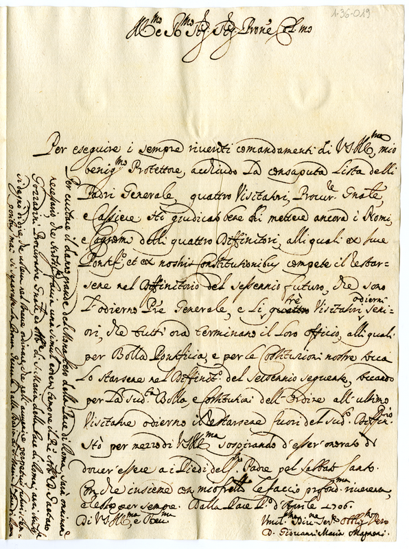 Lettera di Giovanni Maria Magnoni al suo protettore (1706 aprile 1)